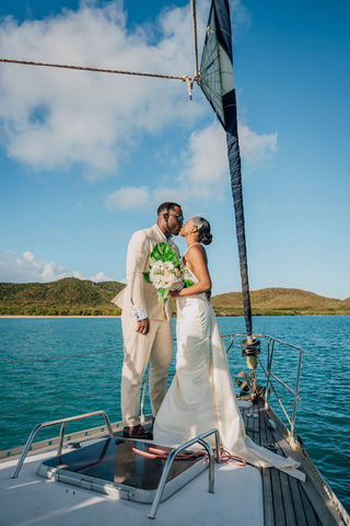 Ahead of an Antiguan sunset, we set sail along the island’s west coast to witness Renée and Rhajhel tie the knot, literally!